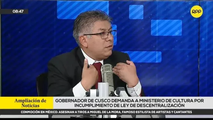 Werner Salcedo, gobernador regional del Cusco, presentó una demanda constitucional de cumplimiento contra el Ministerio de Cultura. | Fuente: RPP