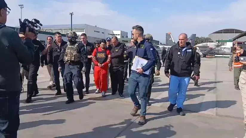 En medio de un fuerte operativo de seguridad, las autoridades peruanas concretaron la expulsión del ciudadano argentino Matías Agustín Ozorio, quien fue entregado a la Policía de su país para enfrentar cargos por su presunta participación en el asesinato de tres mujeres en la ciudad de Buenos Aires.El individuo de 28 años es acusado también de ser la mano derecha del peruano Tony Janzen Valverde Victoriano, alias ‘Pequeño J’, involucrado en el caso antes mencionado.La diligencia contó con un amplio despliegue de fuerzas de seguridad, incluyendo personal de la Policía Nacional del Perú (PNP), la Interpol, la Policía de Extranjería y la Subunidad de Acciones Tácticas (SUAT).Matías Ozorio fue trasladado vistiendo un mameluco de color rojo y un chaleco con la inscripción «Extranjería». Durante todo el proceso, permaneció inmovilizado con esposas que sujetaban sus manos y pies.La entrega oficial se realizó a las autoridades argentinas presentes, entre las que se encontraban el comisario mayor de la Policía de Buenos Aires, Flavio Andrés Marino, y personal de la Superintendencia de Investigaciones en Función Judicial de Argentina.El proceso culminó cuando el ciudadano extranjero abordó una aeronave perteneciente a la Fuerza Aérea Argentina. A su llegada a Buenos Aires, será puesto a disposición de las autoridades judiciales para ser procesado por el crimen que se le imputa.Respecto a ‘Pequeño J’, presuntamente implicado en el mismo caso, la Policía Nacional informó que permanece bajo custodia, mientras continúan las diligencias y trámites legales, en coordinación con las autoridades judiciales competentes, para concretar su proceso de extradición a Argentina.