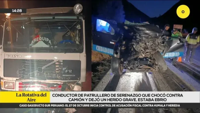 Conductor de patrullero de serenazgo que chocó contra camión y dejó un herido grave estaba ebrio