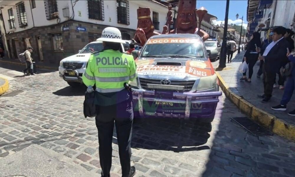 #cusco#aprimerahora.com.- Ayer se informó que el candidato presidencial Arturo Fernandez fue sancioando por el Jurado Electoral Especial del Cusco y la Municipalidad provincial del Cusco, por contaminación visual y sonora y llegar a la ciudad imperial con símbolos sexistas, vulnerando la ordenanza municipal atentando el centro histórico de la ciudad.
