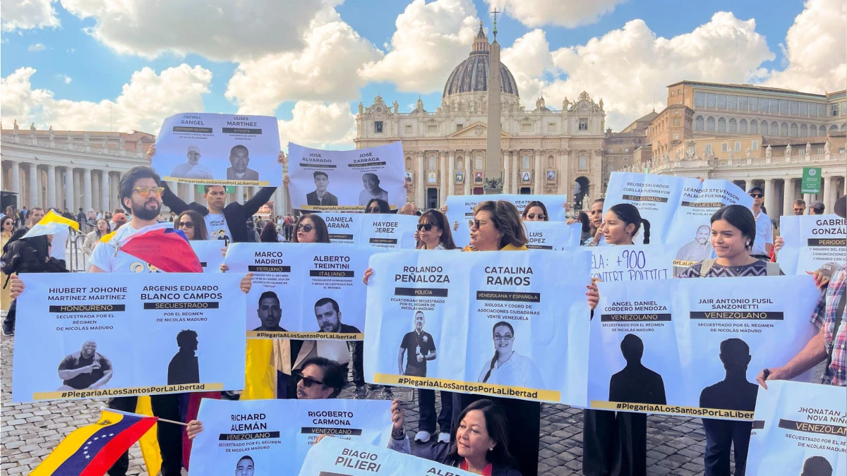 Decenas de venezolanos se congregaron este sábado en las calles de Roma, cerca del Vaticano, para exigir la liberación de los presos políticos en su país, en la víspera de la canonización de los dos primeros santos venezolanos: el médico José Gregorio Hernández y la religiosa Carmen Rendiles.Los manifestantes se concentraron en la céntrica plaza del Risorgimento, donde cubrieron el suelo con fotografías de los presos bajo el lema «una canonización sin presos políticos» y exigieron la liberación de hasta 900 personas.Posteriormente, se trasladaron a la plaza Pío XII, frente a la plaza de San Pedro, donde entonaron canciones por la libertad y afirmaron que sin libertad no hay paz.El pasado 29 de septiembre, la líder opositora y Premio Nobel de la Paz 2025, María Corina Machado, pidió al papa León XIV que interceda por la liberación de los presos políticos venezolanos antes de la canonización.