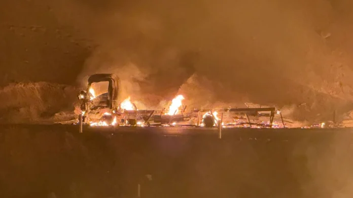 Un conductor murió calcinado la noche de este jueves tras la colisión entre un camión cisterna con combustible y otro vehículo de carga en el kilómetro 614 de la Panamericana Sur, en Chala, provincia arequipeña de Caravelí. El impacto provocó una explosión e incendio que dejó ambos camiones destruidos. El hecho demandó la suspensión del tránsito vehicular, que fue restablecido tras las labores de emergencia.El accidente ocurrió alrededor de las 6:30 p.m. en el sector La Caleta de Chala, según informó la Policía de Carreteras.El cuerpo de un conductor fue hallado dentro de uno de los vehículos, y las autoridades no han podido identificarlo aún.El camión cisterna transportaba combustible cuando chocó contra otro vehículo de carga, generando un derrame que desató el incendio que alcanzó una gran magnitud, de acuerdo a información de la citada dirección policial. Testigos captaron en video el momento en que las llamas se elevaron varios metros, cubriendo ambos camiones.