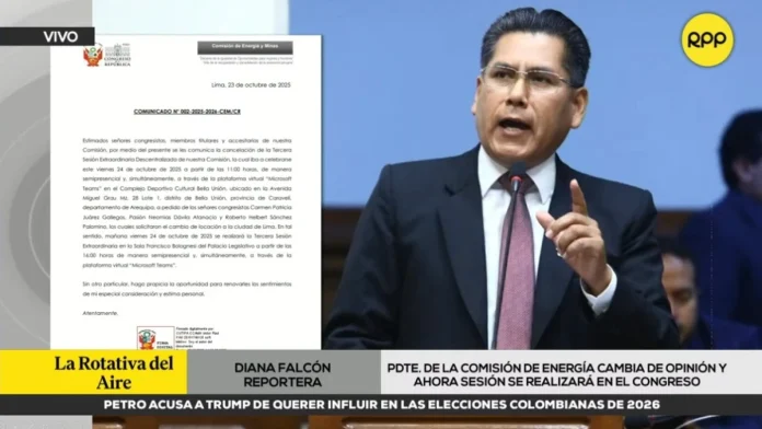 El presidente de la Comisión de Energía y Minas, Víctor Cutipa (Juntos por el Perú-Voces del Pueblo-Bloque Magisterial), anunció este jueves que el debate del predictamen que plantea ampliar el Registro de Formalización Minera (Reinfo) se realizará en el Congreso y ya no en Arequipa como había propuesto inicialmente.Mediante un documento al que tuvo acceso RPP, el titular de este grupo de trabajo señala que el debate se realizará este viernes 24 de octubre en la Sala Francisco Bolognesi del Palacio Legislativo desde las 4 de la tarde de manera semipresencial.Este cambio de opinión se dio luego de que la parlamentaria Patricia Juárez (Fuerza Popular) anunciara que plantearía una moción de censura en su contra si insistía con realizar una sesión para debatir este predictamen en la provincia arequipeña de Caravelí.La parlamentaria señaló que este planteamiento no busca obstruir el debate, sino asegurar que el debate se dé sin presiones externas, por lo que consideró que la comisión debe priorizar la seguridad y el control.Piden renuncia de CutipaQuien también se pronunció fue la vicepresidenta de la Comisión de Energía y Minas, Diana Gonzáles (Avanza País), quien consideró que Cutipa debía evaluar su renuncia, debido a que “no está a la altura del cargo” por impulsar la ampliación del Reinfo.“El predictamen presentado por el congresista Cutipa es nefasto para el país. Ampliar el Reinfo solo significa prolongar el fracaso de un registro que en lugar de impulsar la formalización se ha convertido en el amparo de la minería ilegal en Perú”, dijo. “Lamentablemente el congresista Cutipa no ha sido capaz de promover un debate serio y responsable sobre una verdadera Ley Mape, que permita formalizar a los pequeños mineros dentro de la legalidad y con criterios de sostenibilidad. Creo que es evidente que no está a la altura del cargo y debería evaluar su renuncia”, añadió.