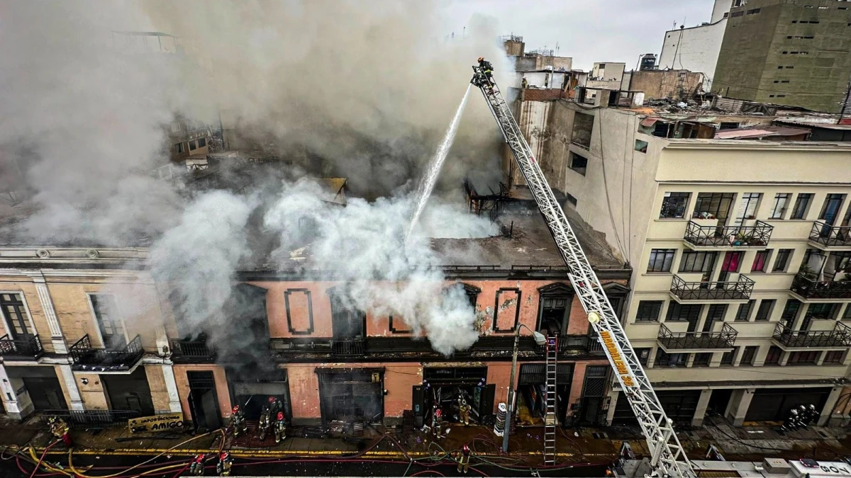 Asimismo, informó que en el lugar del siniestro se encuentran trabajando 17 unidades de bomberos, apoyadas por tres unidades aéreas, cisternas, camiones contra incendios y ambulancias.Uno de los mayores desafíos que enfrentaron los bomberos fue el tránsito vehicular en el Centro de Lima, que dificultó el desplazamiento de los vehículos de emergencia.Otro de los inconvenientes que mencionó fue la baja presión del agua en los hidrantes de la zona.Según una de las propietarias de los puestos afectados, una máquina de fumigación en mal estado podría haber sido la causa del incendio.El Centro de Operaciones de Emergencia Nacional (COEN) del Instituto Nacional de Defensa Civil (Indeci) reportó que la emergencia dejó seis heridos, dos de ellos atendidos en el lugar por quemaduras y cuatro trasladados a hospitales.
