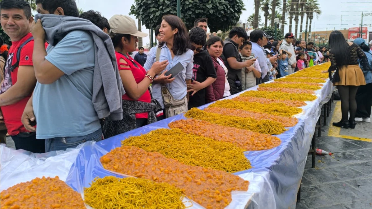 La ciudad de Chincha, región Ica, fue nuevamente el escenario de lo más emblemático de la gastronomía nacional. Cientos de lugareños disfrutaron de la preparación y degustación de la carapulcra con sopa seca más grande del mundo, que en esta ocasión alcanzó a medir 200 metros de largo.Gustavo Huerta, director regional de Comercio Exterior, Turismo y Artesanía del gobierno regional de Ica, en diálogo con el programa Ampliación de Noticias Regional (ADNr), reveló que al final se repartieron 10 mil platillos de carapulcra en la Plaza de Armas, que lució abarrotada con esta actividad.“Hemos trabajado con meses de anticipación. Lanzamos la conferencia en Lima con una Expo Chincha que nos ayudó mucho. Los cocineros se han juntado todos, ellos mismos han financiado esto, hicieron los contactos, han recibido el apoyo de la empresa privada y el resultado es un éxito. Son 10 mil platos que se distribuyeron en la Plaza de Armas. Es muy satisfactorio”, detalló.El funcionario remarcó que la preparación de este tradicional platillo llamado también “manchapecho”, además permitió dinamizar el comercio, generar empleo y reforzar el turismo interno.“Ha sido todo un éxito. Esto ha significado que Chincha y la carapulcra chinchana con sopa seca haya rebotado a nivel internacional por redes sociales. El turista llega, consume, genera ingresos, da empleo y nuestra economía crece. Estamos hablando de millones que se mueven por la gastronomía y el turismo”, enfatizó.