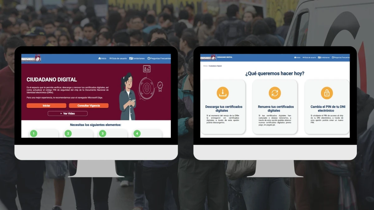 ¿Cómo actualizar mis certificados digitales?Para hacerlo tendrá que ingresar a la plataforma «Ciudadano Digital» del Reniec desde el servidor Microsoft Edge. También necesitará tener acceso a una computadora o laptop, descargar la aplicación ID Perú del Reniec en su celular y adquirir una lectora de smartcard o tarjeta inteligente donde colocará el DNI electrónico para autenticarse.Es preciso mencionar que para renovar los certificados digitales se debe realizar un pago de S/. 6.60 en www.pagalo.pe por «Emisión de nuevos certificados digitales en el DNI electrónico» con el código 00530.Los pasos son los siguientes: Inserte su DNI en la lectora inteligente e ingrese a la plataforma Ciudadano Digital del Reniec desde el navegador Microsoft Edge.Lea y acepte los términos y condiciones que aparezcan en pantalla.Le aparecerán tres opciones, seleccione la que dice «Renueva tus certificados digitales».El sistema le pedirá validar su identidad ingresando el número de su DNI electrónico, se activará la lectora inteligente por su cuenta y usted presionará en continuar.Ahora tendrá que validar su identidad con biometría facial: para ello tendrá que abrir su aplicación ID Perú, colocar «iniciar autenticación» y escanear el código QR que aparecerá en la pantalla de la computadora. Le solicitarán tomarle una foto instantánea [selfie] para validar que usted es quien dice ser. Luego se habilitará la pantalla de renovación de certificados digitales y le aparecerá una lista de pagos realizados. Seleccione el que corresponde a este trámite y dele clic en «descargar CD’s» dos veces. Se iniciará la descarga del certificado digital en su DNI electrónico. En la ventana emergente deberá dar clic a siguiente y colocar una nueva clave PIN. Visualizará una ventana con el aviso de que sus certificados han sido instalados satisfactoriamente y le dará clic en finalizar. Luego de finalizar podrá retirar el DNI electrónico de la lectora, no lo haga antes. César Rosales, subdirector de Certificación Digital del Reniec, precisó que los ciudadanos solo tienen un certificado digital vigente al mismo tiempo. «El certificado digital es único para cada ciudadano y es único en el momento en el que se emite. Si el ciudadano ha tramitado varias veces su DNI electrónico va a tener diferentes certificados en el tiempo, pero solo va a tener como vigente el último certificado que ha tramitado», detalló.Además, agregó que «en el caso de que el ciudadano tiene un DNI electrónico que ya venció y ha realizado un trámite de renovación de documento, cuando vaya a la agencia del Reniec y obtenga un nuevo documento, en ese momento, el sistema le generará un nuevo certificado digital y lo grabará en el chip del DNI, y cancelará los anteriores».