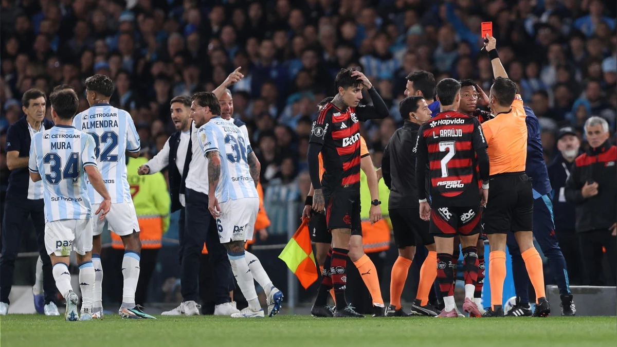 Flamengo ya puede decir que es, otra vez, finalista de la Copa Libertadores. Y es que con el 0-0 que logró ante Racing Club en Avellaneda, será parte del partido clave en el mes de noviembre.Sin embargo, Flamengo no la pasó nada bien a partir del minuto 55 en el Estadio El Cilindro. Resulta que uno de sus delanteros, el ecuatoriano Gonzalo Plata, fue expulsado de manera directa por una agresión al defensa Marcos Rojo. Hubo reclamos de sus compañeros, pero finalmente se fue a las duchas.A raíz de ello es que Conmebol dio cuenta del audio VAR en lo que fue la expulsión del atacante de Flamengo. El que le mostró la cartulina roja fue el referí chileno Piero Maza. «En el campo, un jugador de casaca roja y negra queda en el piso. Inmediatamente se acerca un jugador de casaca celeste y el jugador de casaca roja y negra golpea con los puños en los genitales del adversario, lo que configura conducta violenta», es lo que se dice como introducción.Posteriormente, en el VAR es que se discute la acción del internacional con la Selección de Ecuador.»Búscame todas las cámaras por favor. Espera que seguimos buscando. Danos tiempo (…) Lo levanta Rojo y le tira un manotazo. Lo va a parar el número 6 y le tira un golpe», es lo que se indica desde el VAR, en relación a la expulsión de Plata en Flamengo.Flamengo espera rival en la final de la LibertadoresTras derrotar en el global a Racing, Flamengo dice presente en lo que será la gran final programada para el sábado 29 de noviembre en el Estadio Monumental U Marathon (Lima).Su rival saldrá del vencedor entre LDU Quito y el Palmeiras. Hay que tener en cuenta que la ida quedó 3-0 a favor del conjunto ecuatoriano. Busca su cuarta Libertadores tras los éxitos alcanzados en 1981, 2019 y 2022.