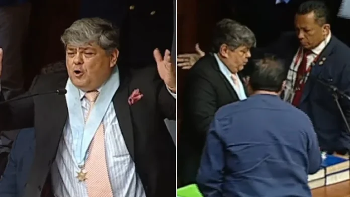 El abogado Carlos Torres Caro fue retirado la mañana de este martes del hemiciclo del Parlamento, cuando hizo una comparación entre el programa de Youtube ‘Hablando huevadas’ y lo que se discute en el Congreso de la República.Fue durante su intervención como defensa del expresidente Pedro Castillo ante la Comisión Permanente, que trató el informe final sobre las denuncias constitucionales por las que se busca inhabilitarlo. Entonces, el abogado cuestionó que el tratamiento a su patrocinado y criticó la labor de los legisladores.“Quiero hacer referencia que hay peruanos de abajo, así como Pedro Castillo, llegan arriba. Miren a Jorge Luna y Ricardo Mendoza, dos extraordinarios personajes, que han llenado el Madison Square Garden de Nueva York. ¿Y saben cómo lo han llenado? hablando las mismas huevadas que ustedes”, indicó antes de que le apagaran el micrófono.Reacción desde la Mesa DirectivaDe inmediato Torres Caro fue interrumpido por el tercer vicepresidente del Congreso, Ilich López, quien estaba conduciendo la sesión y le invitó a retirarse del hemiciclo, pues consideró una falta de respeto su intervención.“Señor abogado retírese usted, se terminó esto. Se le ha dado 13 minutos y no ha hecho la defensa adecuada. Se retira señor, no le voy a soportar ninguna falta de respeto en este Parlamento, se retira”, señaló.“Colegas congresistas, para precisar que el señor abogado ha salido caminando por su propia voluntad después del agravio que ha cometido con el Parlamento”, añadió López. Luego de ello, la Comisión Permanente continuó con el debate y finalmente aprobó por mayoría el informe que inhabilita por 10 años para ejercer cargos públicos al expresidente Pedro Castillo, a raíz del intento de golpe de Estado de 2022.En tanto, desde el Legislativo indicaron que Torres Caro fue retirado del hemiciclo por los “constantes agravios al Parlamento Nacional”. Asimismo, indicaron que darán cuenta al Colegio de Abogados “para que tome las acciones pertinentes”.