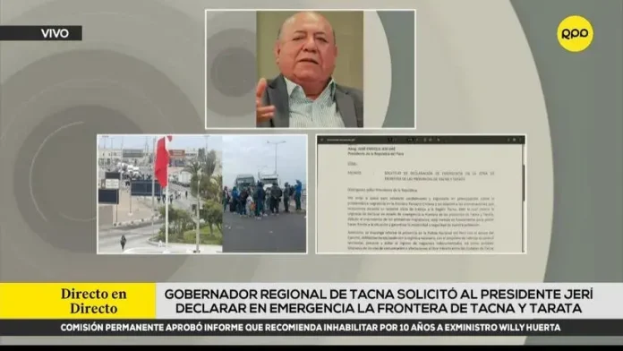 El gobernador regional de Tacna, Luis Torres Robledo, conversó en exclusiva con RPP sobre el pedido de declarar en emergencia la frontera con Chile, en donde subrayó que se busca evitar el ingreso de extranjeros indocumentados.»Esto [el pedido] es como consecuencia de una visita que nos hizo el presidente Jerí el domingo pasado, previendo que esto podía suceder por declaraciones hechas por personajes en Chile. Tenemos ahora entre 70 a 80 venezolanos en la frontera del lado chileno. Inclusive han trancado la vía y no dejan pasar los carros ni camiones», manifestó.Añadió que el pedido es para brindar apoyo la Policía, a fin de que -con respaldo del Ejército- patrullen «nuestras fronteras, para que no ingresen los ciudadanos extranjeros indocumentados». Mencionó que una de las razones es el escaso número de policías para cubrir la frontera con Chile y que el Gobierno Regional apoyará con equipos para el control fronterizo.»Tendremos en este momento unos 50 policías en la frontera. Pero tenemos entre 100 a 150 kilómetros que cuidar en la frontera. Porque no solamente es el paso por el control fronterizo, sino a lo largo de todas las pampas y playas que tenemos como frontera con Chile. El Gobierno Regional va a apoyar con dos camionetas totalmente operadas para que ayuden a patrullar. Y aduana va a entregarle más vehículos a la policía, hasta que el decreto supremo salga, como se acordó en ese tiempo [con José Jerí]», mencionó el gobernador.En ese sentido, exigió que salga el decreto supremo que, según sostuvo, le prometió el presidente José Jerí para declarar en emergencia la frontera con Chile. «Las ciudades no se declaran en emergencia. Es la línea fronteriza que hay desde Bolivia hasta pasando hacia el mar, esas líneas fronterizas se tienen que declarar en emergencia», precisó.