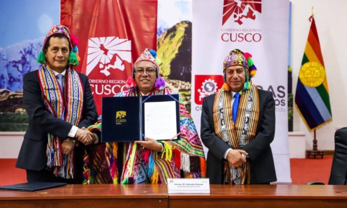 La firma del acuerdo estuvo a cargo del gobernador regional del Cusco, Werner Salcedo Álvarez y el gerente de proyectos institucionales del BCP, Marco Aiquipa Limay, que permitirá brindar ambientes seguros y adecuados para los escolares.