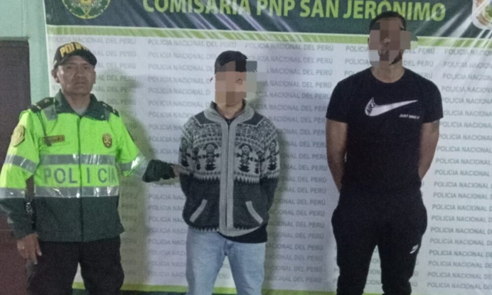 Inmediatamente, personal policial de patrullaje motorizado se desplazó por la zona, logrando ubicar y detener a los presuntos autores en la vía expresa, a la altura del centro comercial Makro – San Jerónimo, donde el agraviado los reconoció plenamente.