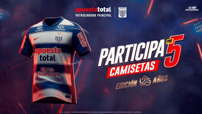 Apuesta Total viene regalando a sus cliente experiencias únicas ofreciendo varios juegos de casino personalizados, Meet&Greets con figuras nacionales y estrellas de talla mundial, la posibilidad de ver en el cine las finales de los torneos más importantes, ajustar y celebrar goles en las más de 400 tiendas físicas a nivel nacional, tener la oportunidad de viajar por todo el continente junto a tu equipo favorito, y muchas sorpresas internacionales que se vienen gracias al patrocinio regional que tenemos con Liverpool FC y la Selección Argentina.En esta oportunidad, Apuesta Total llega con un regalo especial por los 125 años del Club Alianza Lima para todos los hinchas blanquiazules. Apuesta Total sortea 5 camisetas edición 125 años, para que los ganadores puedan lucir con orgullo los colores de su equipo este año en Matute y en cualquier parte del Perú. Una oportunidad única para llevar en la piel la camiseta que simboliza la historia íntima.¡Se ajusta porque se cree, y si se cree, se gana!Participar es muy sencillo: sólo tienes que seguir a Apuesta Total en Instagram y/o Facebook, colocar en comentarios a tu amigo blanquiazul, y compartir la publicación en tus historias. Ojo, tienes tiempo hasta el lunes 23 de marzo a las 12 del mediodía para participar. Y luego, solo quedará cruzar los dedods para ser uno de los 5 afortunados.Apuesta Total, patrocinador principal de Alianza Lima.
