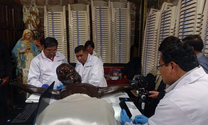 #cusco”#aprimerahora.com.- Un equipo de profesionales de la Dirección Desconcentrada de Cultura de Cusco en estos días realizan los trabajos de limpieza, mantenimiento y conservación integral de la venerada imagen del Señor de los Temblores, con el objetivo de garantizar su adecuado estado de conservación con miras a las celebraciones de Semana Santa.