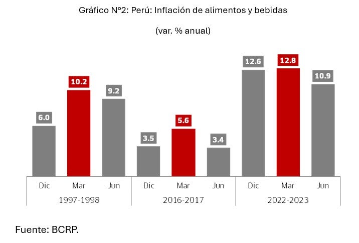 El impacto sectorial también puede ser considerable. En el caso del agro, la alteración de las temperaturas y precipitaciones afecta tanto a la producción tradicional como a la orientada a la exportación. De hecho, en los últimos 15 años, los cultivos orientados a la exportación crecieron en promedio 10% en años normales, frente a solo 4% en años con FEN Costero. En pesca, el calentamiento del mar también deteriora las condiciones de captura: en años recientes con incidencia del FEN Costero, la captura de anchoveta en la zona norte-centro se redujo alrededor de 57%, considerando ambas temporadas.La ocurrencia del FEN también puede tener efectos sobre los precios. En particular, la inflación de alimentos y bebidas registró un alza transitoria en el primer trimestre de cada uno de los 3 episodios más recientes (1998, 2017 y 2023), la cual demoró en disiparse. El caso del FEN 2023 tuvo, además, el precedente de las presiones arrastradas por la crisis de los fertilizantes de 2022, que agravó el incremento de los precios. Estos aumentos deterioraron la capacidad adquisitiva de los hogares, sobre todo de los más vulnerables quienes destinan una mayor proporción de sus ingresos al consumo de alimentos (55%).