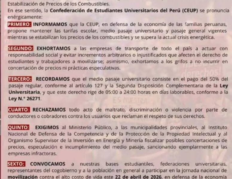 La entrada Universitarios se movilizaran el 22 de abril contra el costo de vida,incremento de tarifas se publicó primero en A Primera Hora Cusco.