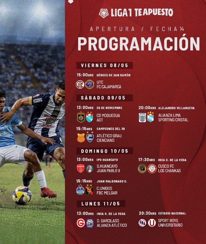 Alianza Lima y Sporting Cristal protagonizarán un partidazo clave en la Liga1 Te Apuesto. Ambos clubes buscarán la victoria en el estadio Alejandro Villanueva por la fecha 14 del Torneo Apertura.A través de sus redes sociales, la organización de la Liga1 confirmó que el Alianza y Cristal se disputará el sábado 9 de mayo a partir de las 8 de la noche (hora peruana). De momento, Alianza ocupa el primer lugar del Apertura al sumar 23 puntos, al igual que Los Chankas, Por su parte, Cristal lleva 11 unidades y se sitúa en el úndecimo lugar. ¿Cuándo y dónde juegan Alianza Lima vs Cristal en vivo por la fecha 14 del Torneo Apertura 2026?