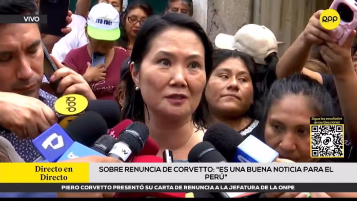 La candidata presidencial de Fuerza Popular, Keiko Fujimori, se pronuncio sobre la renuncia de Piero Corvetto a la jefatura de la Oficina Nacional de Procesos Electorales (ONPE), señalando que la decisión resulta “saludable” de cara al proceso de segunda vuelta previsto para el próximo 7 de junio.“Creo que es una buena noticia para el Perú, una buena noticia para los peruanos que este señor haya dado un paso al costado”, indicó.“Yo creo que hay un primer responsable de todas estas grandes irregularidades y creo que esta medida que él ha tomado va a ser saludable para el proceso electoral, sobre todo para lo que viene”, agregó.En ese sentido, Fujimori resaltó la necesidad de que diversas instituciones, como la Contraloría General de la República, la Junta Nacional de Justicia (JNJ) y el Ministerio Público, investiguen lo ocurrido durante la primera vuelta, donde se reportaron mesas instaladas tardíamente y problemas en la implementación de herramientas tecnológicasAsimismo, afirmó que los ciudadanos “merecemos saber la verdad” sobre las irregularidades detectadas y exigió que se adopten las medidas correspondientes para evitar que estas situaciones se repitan en la segunda vuelta.“Los peruanos tenemos el derecho a acudir a votar, a elegir las autoridades y que estos procesos se realicen con transparencia y que la voluntad popular se respete”, aseguró.En otro momento, la candidata presidencial rechazó un comunicado emitido por Juntos por el Perú (JP), en el que se advierte sobre una presunta narrativa de fraude impulsada por partidos como Fuerza Popular y Renovación Popular con el objetivo de “controlar el sistema electoral para promover el boicot del resultado” del proceso electoral.“Creo que corresponde a todos los partidos políticos esperar el pronunciamiento final del Jurado Nacional de Elecciones (JNE) para ver qué medidas adicionales se tomaría o no. Pero yo estoy esperando con mucha prudencia el pronunciamiento final”, sostuvo.Finalmente, Keiko Fujimori instó al Jurado Nacional de Elecciones a “pronunciarse pronto” a fin de “establecer la competencia de cara a la segunda vuelta”.