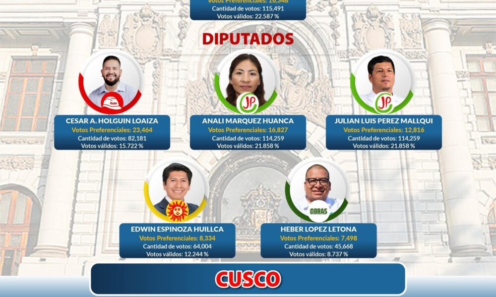Los virtuales diputados por Cusco, serían Analí Márquez Huanca, abogada y candidata a la primera vicepresidencia de su partido político natural de la provincia de Chumbivilcas, Julián Luis Pérez Mallqui dirigente cocalero de la provincia de La Convención, fue exmilitante de Perú Libre, registraría tres sentencias, ambos del Partido Juntos por el Peru.