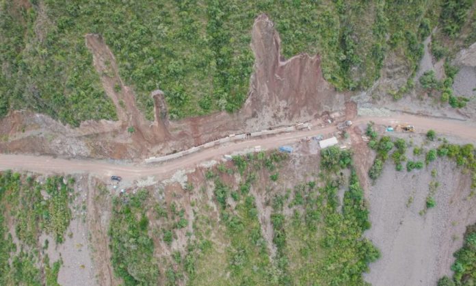 Actualmente, se desarrollan trabajos de perforación y voladura de roca, así como la construcción de alcantarillas, badenes y muros de contención, acciones que permitirán garantizar una vía segura y eficiente.