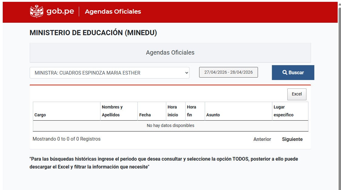 El pasado 21 de abril, un grupo de jóvenes denunció en RPP que más de 300 profesionales vieron truncados sus sueños de seguir estudios de maestría y doctorado en universidades extranjeras de prestigio al no tener respuesta a tiempo del Programa Nacional de Becas y Crédito Educativo (Pronabec), dependiente del Ministerio de Educación (Minedu), respecto a la procedencia de la Beca Generación del Bicentenario (BGB) para costear dichos estudios. Dos días después, a través de un comunicado, el Minedu informó que se venía implementando «una reingeniería integral» dentro del Pronabec, lo que incluía la BGB. Además, indicó que no se había programado «una nueva convocatoria de esta beca», y que la prioridad sería «garantizar la continuidad y culminación de los actuales becarios».Ante esa situación, la Comisión de Educación del Congreso citó, el último viernes, a la ministra de dicho sector, María Cuadros Espinoza, para que informe hoy acerca de las «alternativas de solución» para atender a los estudiantes afectados por el «desfinanciamiento del Programa Integral de Becas» para el presente año.  Ministra de Educación no asistió por falta de disposición en su agendaNo obstante, Doris Gavilano, secretaria general del Minedu, remitió un oficio dirigido a Segundo Montalvo, presidente de la Comisión de Educación, en el que informó que la ministra Cuadros Espinoza no asistiría hoy a la sesión de dicho grupo de trabajo, porque su agenda «se encuentra comprometida».»Debemos precisar que la agenda de la señora Ministra de Educación se encuentra comprometida para la fecha y hora señalada, situación que se complica por la poca antelación de la citación, dado que fue presentada ante la Mesa de Partes del [Minedu] el viernes, 24 de abril, a las 23:17 horas, lo que hace imposible reprogramar su agenda para concurrir a la convocatoria», precisa el oficio.»Sin perjuicio de lo expuesto, en las próximas horas, remitiremos un informe técnico respecto a los temas materia de convocatoria», agrega.  No obstante, RPP revisó la agenda oficial de la ministra de Educación en la página web del Minedu, y encontró que no había datos disponibles de sus actividades programadas para este martes. Tampoco había información acerca de su agenda de ayer. Asimismo, en las redes sociales del sector, hasta el cierre de esta nota, no había registro de actividades en las que había participado la ministra a lo largo de la mañana.